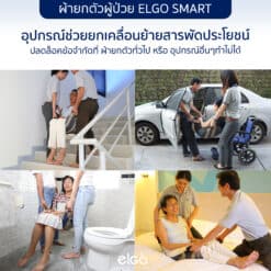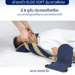 เป็นอุปกรณ์เคลื่อนย้ายผู้ป่วยติดเตียงและผู้สูงอายุ ใช้ร่วมกับรถเข็นผู้ป่วย พกพาง่ายไม่เปลืองที่เก็บ เป็นอุปกรณ์สำหรับเคลื่อนย้ายผู้ป่วย ในพื้นที่ที่รถเข็นไม่สามารถเข้าถึง ซึ่งผ้ายกตัวผู้ป่วย ELGO แต่ละรุ่น ถูกออกแบบให้มีคุณสมบัติโดดเด่นแตกต่างกัน เพื่อให้เหมาะกับความพร้อมของร่างกายของผู้ป่วยที่แตกต่างกัน